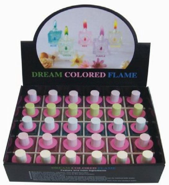 Product code : PMW001 Set - 1 odourless colour flame bottle, incense & burner as well as 4 small scented wax candles